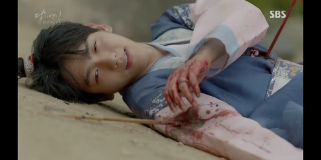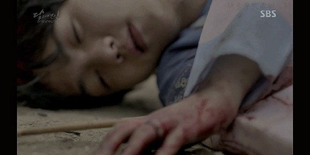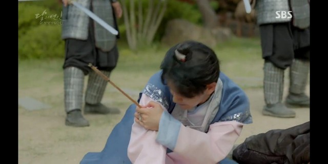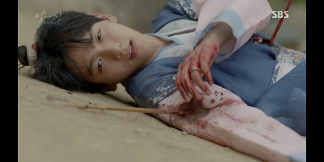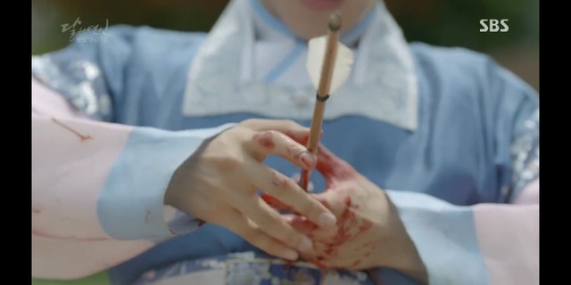 妖七七被松绑后,眼神一直盯着边伯贤,她最后下定决心似的,拔出了一旁侍卫的剑,割了自己的脖颈