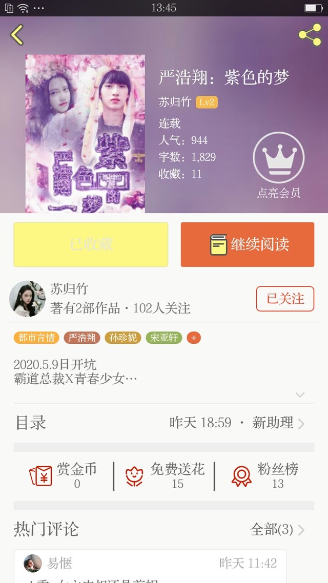 作者大大推荐我的新作:《严浩翔:紫色的梦》