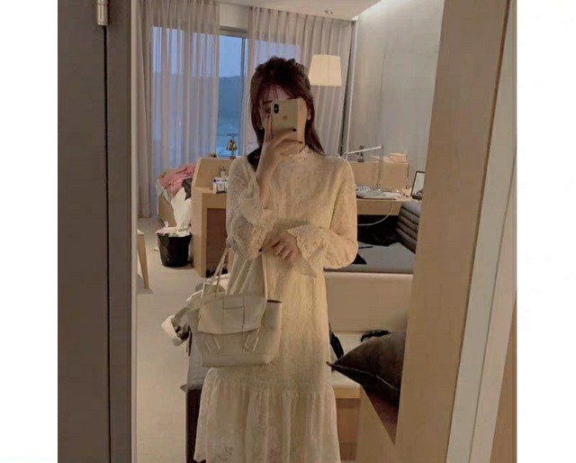 今天穿了件纯白的仙女裙,扎了一个半丸子头,化了点淡妆既俏皮又可爱,既活泼又淑女,好像真的有点像聂莹莹那个角色