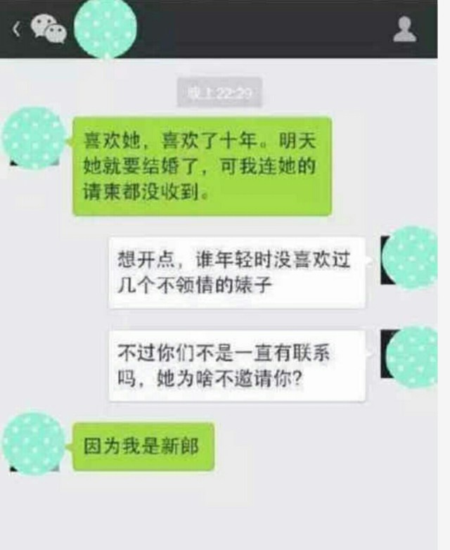 “我昨天看到你男朋友了。”“怎么可能,我还单身呢。”“就在菜市场,三块一斤。”
