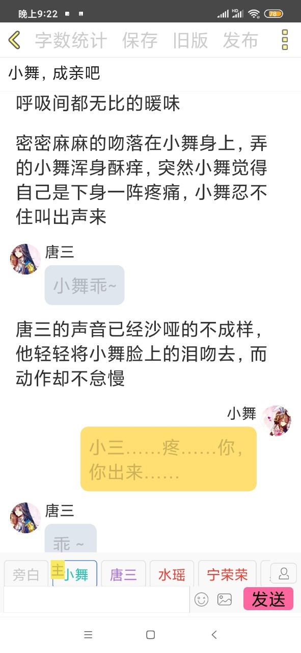 但发现自己身上虽然有许多青青紫紫的痕迹,但身子很清爽,显然唐三昨晚“吃”饱后,将小舞已经清洗过了