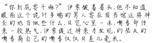 “谁说来图书馆就一定要看书?”约瑟夫笑着,有点像得逞的狐狸,突然抓住了伊索的手腕,将两只手抵到书柜上。