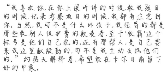 未得到约瑟夫的答复,伊索就被约瑟夫强行牵着手走出了教室。