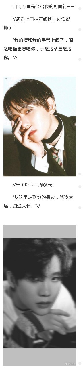 仙女作者继续安利新作――《江欲卿:危险距离》,喜欢伯贤艺兴和偶练的各位可以考虑考虑戳一戳收藏啊~
