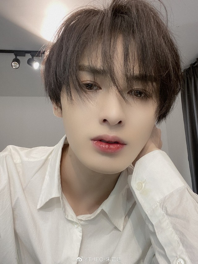 朱正廷他身形高大纤瘦,因长期练舞所以腰身很细,发丝随着微风往一边飘,眼睛直视着她们班门口。