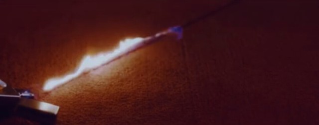 胡春杨从口袋里掏出火柴,唰的一下擦亮了,让它沿着绳子慢慢的烧上去。