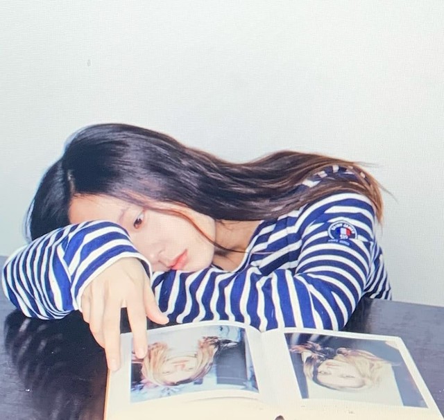 秀晶伸了个懒腰后,趴在桌子上,一脸期待的看着我。
