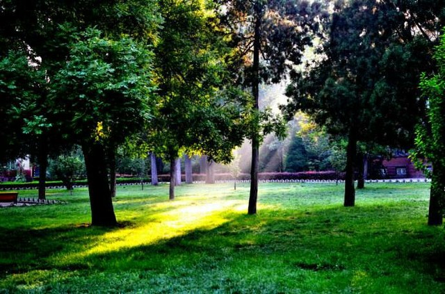夏日的清晨,初生的太阳照在脸上,身边的草坪上,露珠在闪闪发光,清凉的微风在身边抚过,有时还带着一丝谈谈的花香。