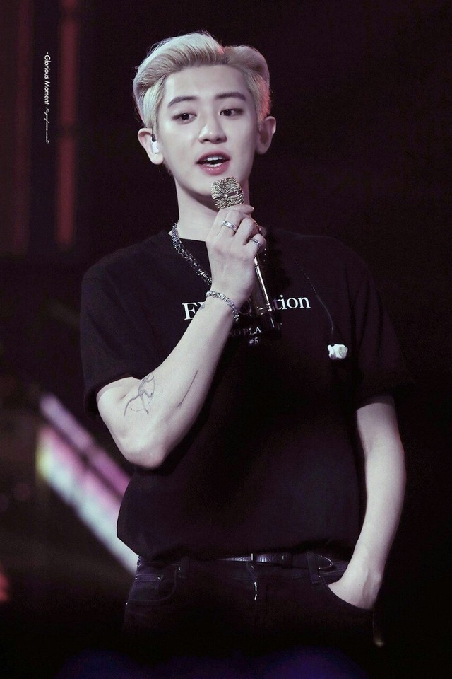 朴灿烈手举着话筒,染着浅色头发,刚脱掉黑色西装的他露出了强壮的肌肉,天,人长得帅就算了,偏偏身材还很好,这让其他男生情何以堪