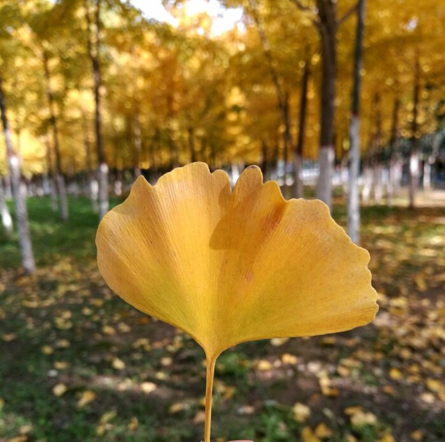 秋日,校园的银杏林里,满地的银杏叶为地面铺上了一层金黄。