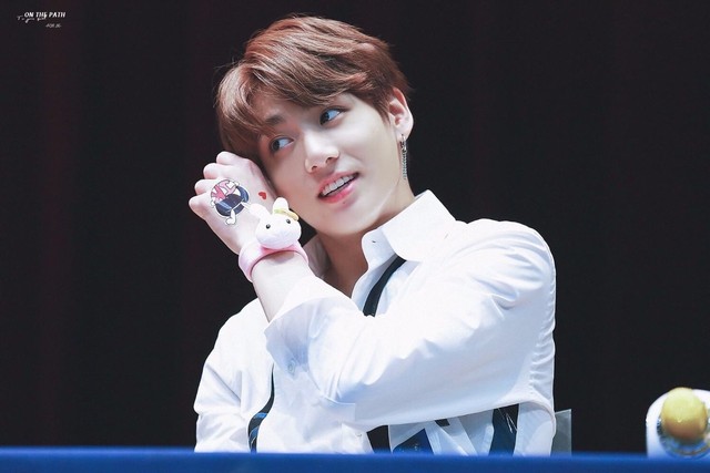 田柾国的眼底闪过一丝异样的惊喜,嘴角轻轻上扬着