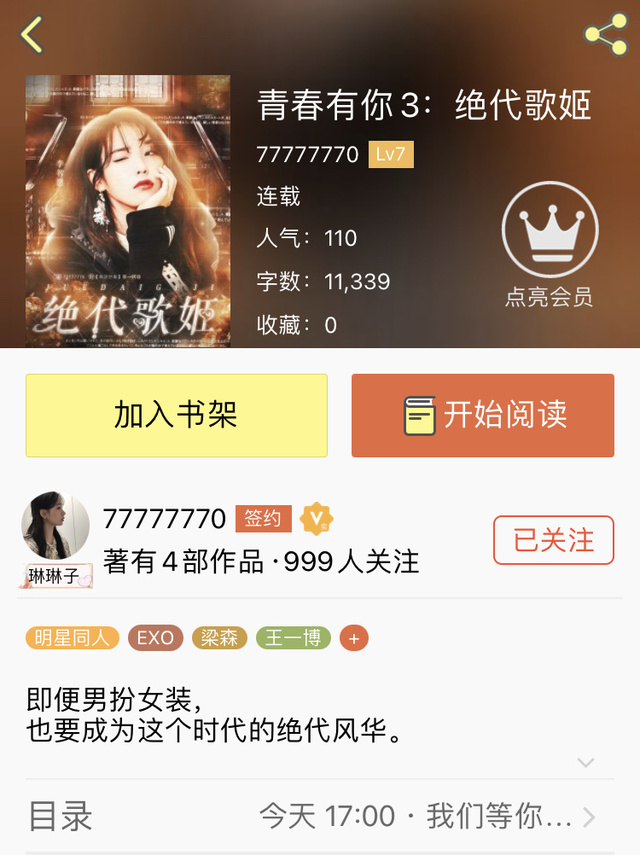 作者女主女扮男装闯男人堆追梦,追青你3的宝贝们绝对入股不亏!
