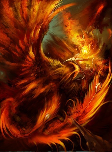 昆仑山巅,有一火红的大鸟盘旋于空中。