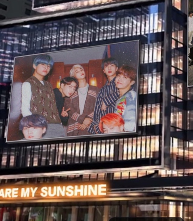商场的屏幕上放映着韩国最火的组合之一,好像叫什么防弹少年团,以前听你的同事说过