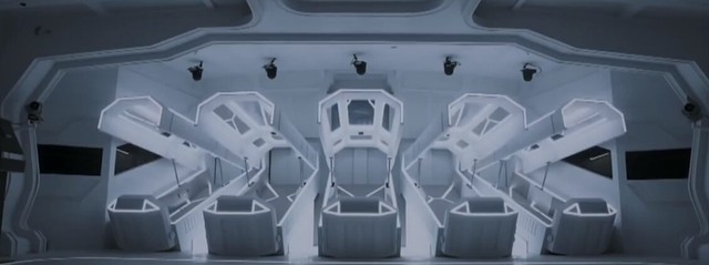 暗门背后的景象同外头可谓是一个天上一个地下,加入密室,入眼的是一堆机器和贴着墙壁而排的胶囊舱,看来那个就是体验器了
