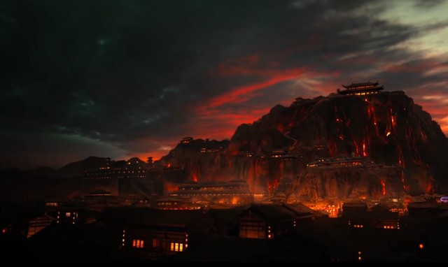 站在山下仰望,只见嶙峋的山上插满温氏暗红的旗帜,山上的黑色石头突兀而尖锐,火光隐隐,极为不详。