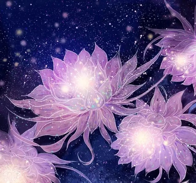 湖里的正中间,有着十几颗莲花,虽说是莲花,但又不像是莲花,更像是开在水中的紫色昙花,它们都还没有开花,不过,花朵尖端,却有着点点荧光