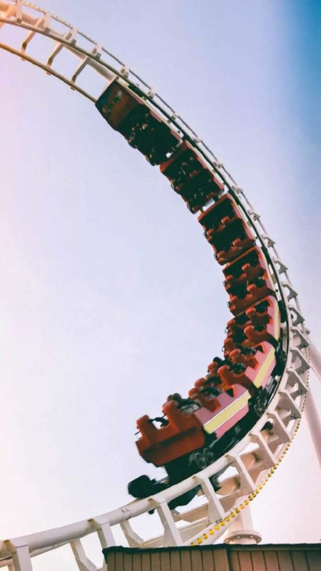 正说着,过山车忽然停了下来,就这么悬在半空中