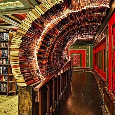 你走着走着,看到了一个特别的走廊,用书搭建了一个屋顶,很是别致。