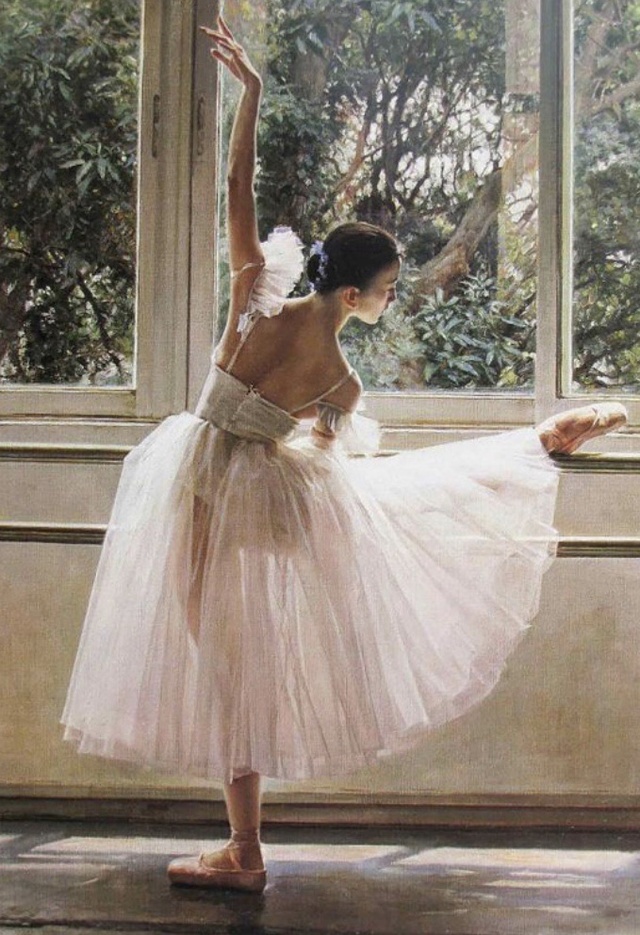 她的动作很美,很优雅,她真的很适合跳芭蕾舞,她生来就是一只的高贵白天鹅。