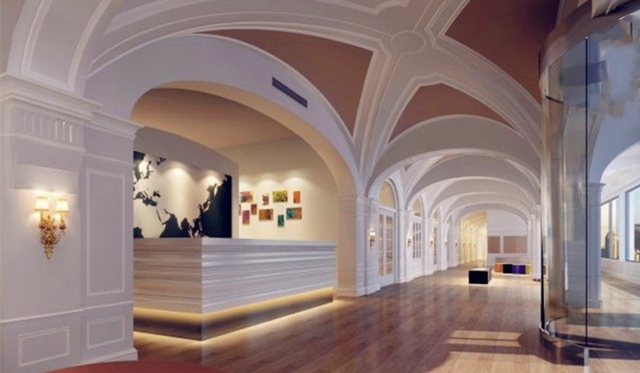 你走进艺术楼后,在走廊左看看右看看。