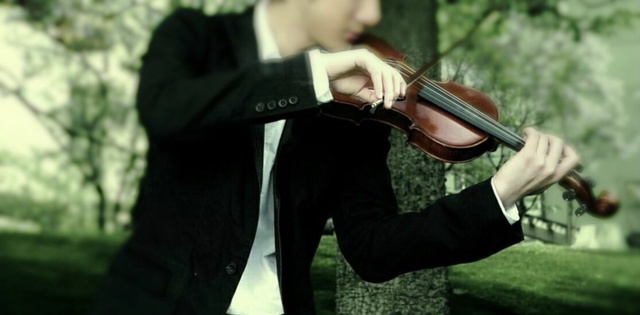 秀晶紧盯着那个拉小提琴的人问道。