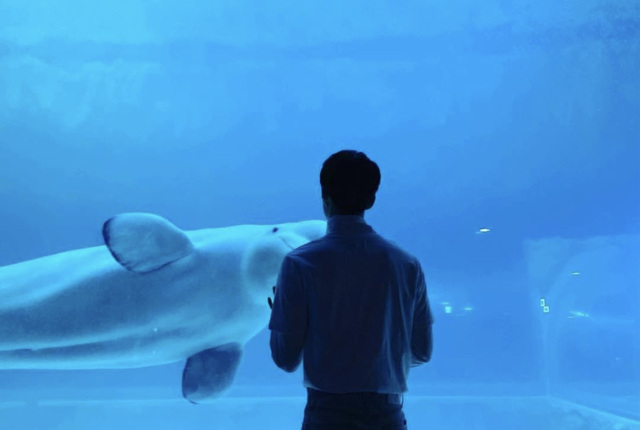 这时,你注意到了落在后面的吴世勋,他就那样静静的,看着面前的白鲸。