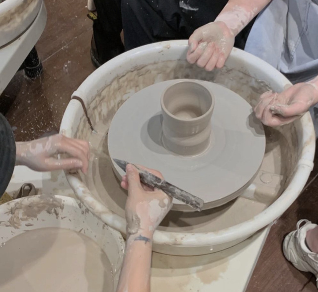 他一点点的教你制作,在细心的辅助你捏好你喜欢的杯型。