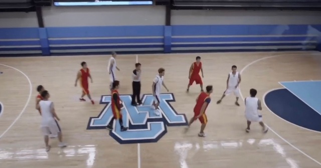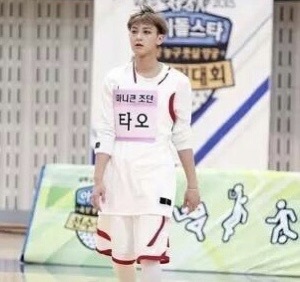 鹿晗灵敏的躲过蓝队的攻势,就在有投篮机会时,鹿晗被堵住去路,他看准时机传给近处的黄子韬。