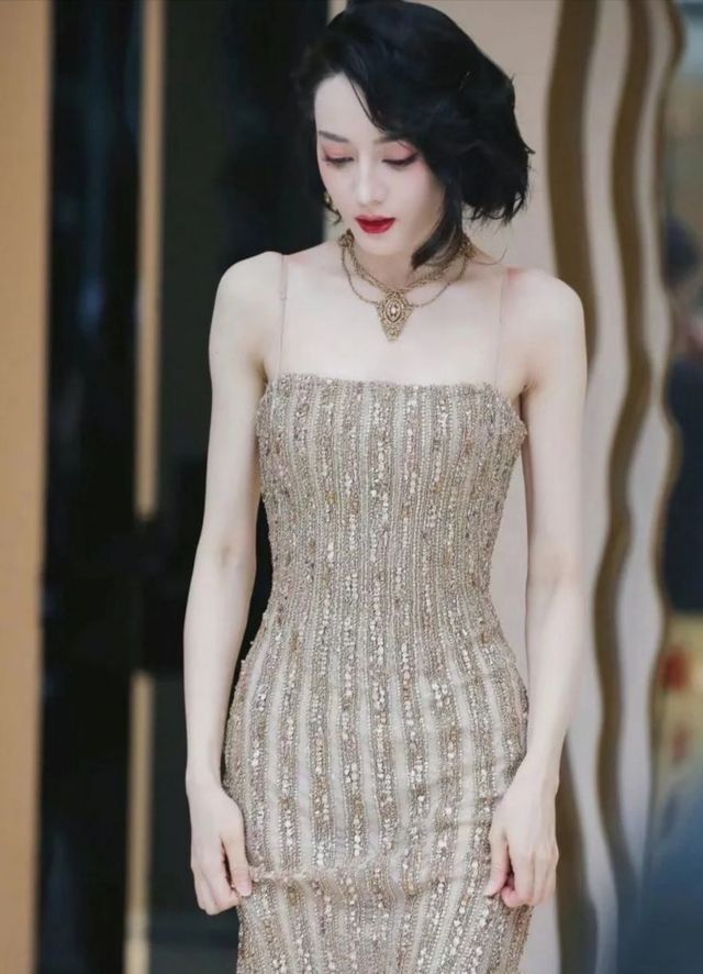 约莫一个小时后,你的房门打开了,你一袭吊带鎏金刺绣闪片礼裙,搭配同色系复古项链,白皙的皮肤加上艳丽的红唇,你整个人看起来,有一种中世纪高贵吸血鬼的即视感。