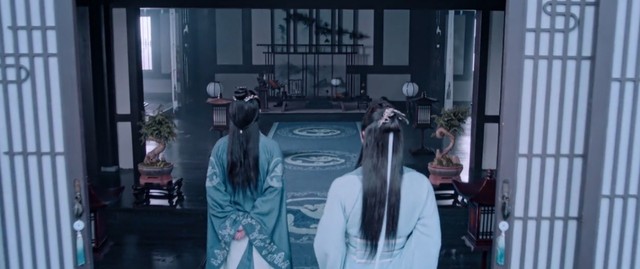 蓝曦臣和蓝启仁并肩走进屋内,讨论着拜礼之时的事情。