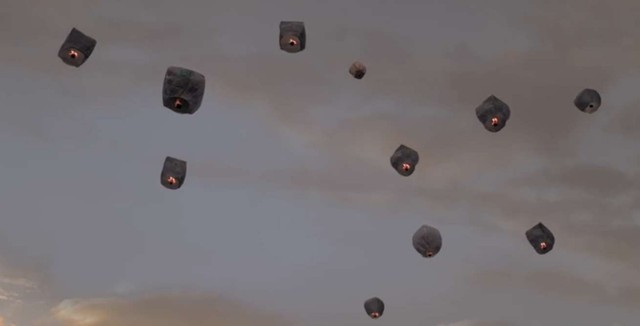 灯缓缓升空,人们也开始许愿了。