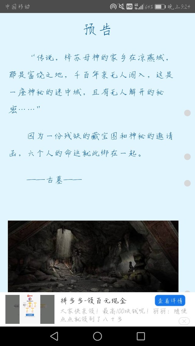 吐槽君这种探险的题材我认为还是挺有意思的,作者大大的文笔挺好的,剧情上也很精彩,没什么问题,还是建议多加一些描写啦,比如人物描写和环境描写什么的。