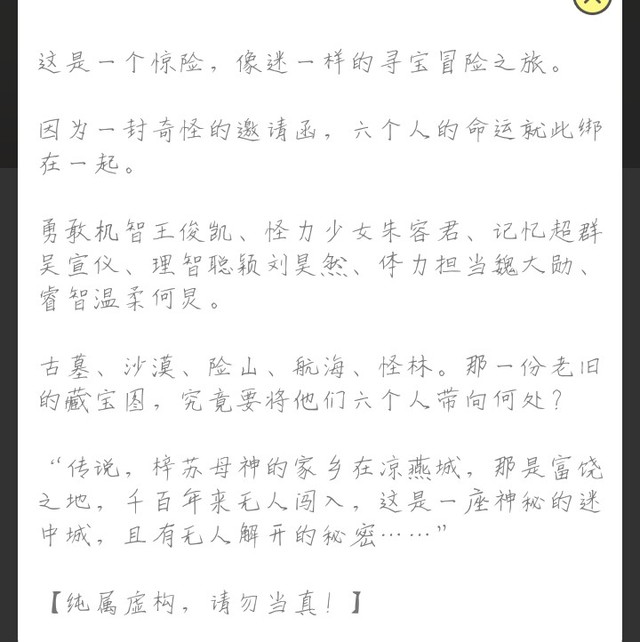 吐槽君大大的剧情和文笔还是不错的,我就不多做吐槽了,其实也没什么槽点,喜欢看明星同人和冒险题材的小伙伴们可以去看呀,推荐哦。