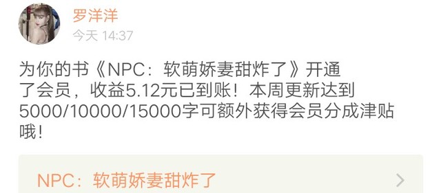 挨千刀“感谢宝贝点亮的会员,加更到账。”
