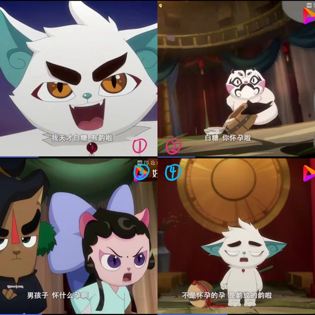 某青打的正起劲,一回头看见门口的四猫……