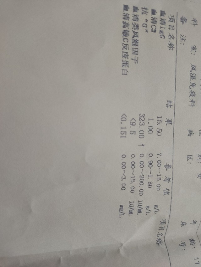 血沉高了13,肌酐也低了。不过这两个也不打紧,就继续往下翻。手上的几张都不是关键,主要看血清相关的报告。现有的唯一有价值的就是我的抗O实验,可以初步辨别现在体内风湿大体达到什么位置。这次的抗O结果不理想飚到了412IU/ML,甚至比第一次来医院检查的还要高89IU/ML。这下我脸上是真的笑不出来了,后面还有最关键两张没看,我不知道该以什么心情去面对。万一这次中奖了,自己该怎么办?