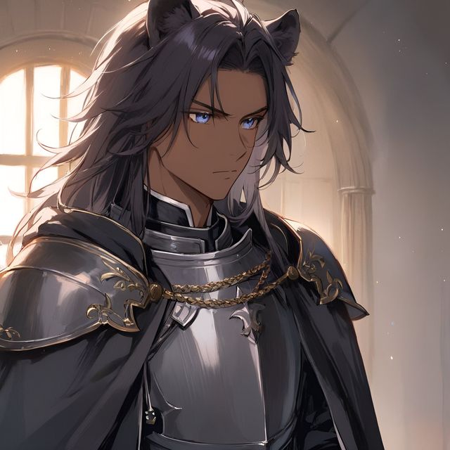 “呜呜呜呜呜——”话音未落,百米开外的城墙之上忽的响起了一阵悠长的号角声,猛烈回荡在码头的上空,惊得剑齿虎一时神色大变,漂亮男孩也不禁闭了嘴。号角余声未散,却见厚重高大的城门缓缓打开,密集的尘土紧随其后碾过了城门,飞也似的朝码头方向赶来,绵延街道百余米长,吓得沿路的居民纷纷尖叫谩骂着向一旁避开。直到裹挟尘埃的黑影直抵近前又猛然刹住,剑齿虎这才能看清来者的全貌——四五匹高大、英俊的黑色骏马,浑身自蹄到鬃竟无半点杂毛,正在他的面前耀武扬威、引脖长啸。每匹马的马背上都驮着一名武士,黑甲闪耀,黑袍飘逸,黑色的长剑与长弓斜跨于马侧,皮肤黝黑,隐约可见斑斑点点,毛发散乱,眼神坚毅,圆润的耳廓与狮子、剑齿虎相似,看起来似乎也是猫科的同族,从身材判断,体型应介于狼与狮之间,与生存在更新世的惊豹、山狮相当。