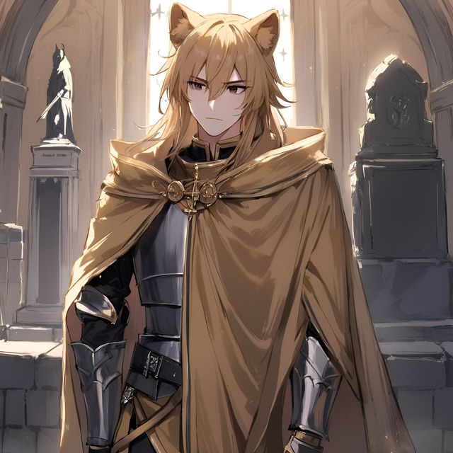 伴随着越来越多的友军加入战场,一道明晃晃的耀眼轮廓也紧跟着冲出悬崖顶端的绝壁,自两面山崖之间纵横反复,最终顺利降到了战场的中心——来者骑一匹金色的高头骏马,上身在晌午阳光的照射下熠熠生辉,如一座高大金山般耀眼夺目。几乎无法用肉眼直视。剑齿虎不得不抬手遮挡,从指缝间隙处方才看清来者的面容。