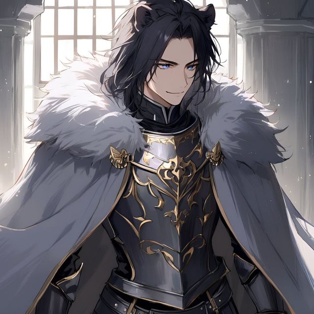 “你就是天罚,对吗?”正疑惑间,对方却已转过身来。他看起来大概二十岁左右,留着黑色的寸发,坚毅的脸庞呈现出国字的轮廓,一双粗眉有如一对阔剑般横跨于淡金色的双眸之上,温暖的灯火在他身上反射出近乎冰雪的冷光,以至于他的周身都散发着一种令人毛骨悚然的杀伐之气,隐隐透露着一股这个年纪不该有的凌厉与肃煞。从双耳与带绒的尾巴不难看出这是一只刚摆脱秃子称呼没多久的青年雄狮,与军中的一众壮汉相比,他的身高其实并不算特别突出,比大漂亮和天罚都要稍矮一些,虽谈不上高大魁梧,倒也显得格外敦实与健硕。