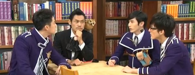 司徒眠盘腿坐在桌上,看着两边的三位萌骑士,脑袋晃来晃去。