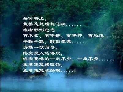 孟婆喝一碗孟婆汤,忘了前世的忧伤;走一回奈何桥来生跟你在续缘