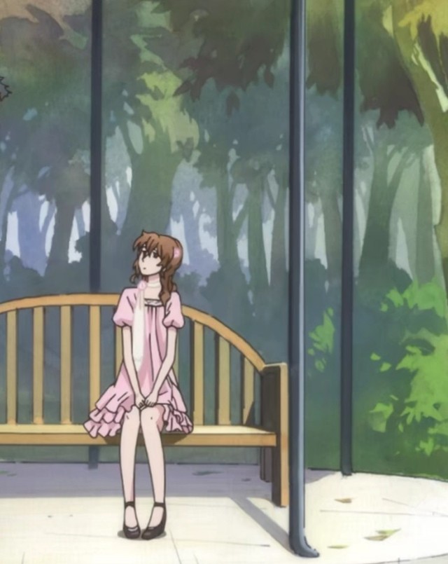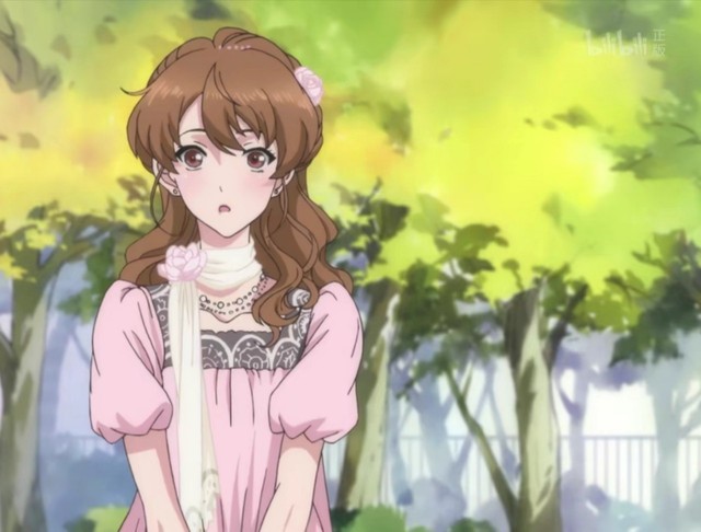 澄暄筱画的是一条裙子——那是一条粉色的连衣裙,领口以黑色的镂空、荷叶边的蕾丝点缀,泡泡袖。与其相配的颈饰是一条白色的丝巾,系在脖子上时是用一朵粉色的玫瑰花样式的夹子固定。头饰是一个以一朵粉色的玫瑰花点缀的,还带着以粉色的珍珠做成流苏的发箍。鞋子是是一双中跟的黑色高跟鞋。