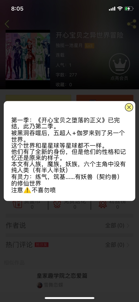 作者大大第二季:《开心宝贝之异世界冒险》即将上线。