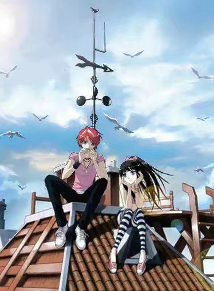 我们一起来到屋顶,我吹口琴,她则静静的坐在我身边。背景是满天的飞鸟,和一个风向标。