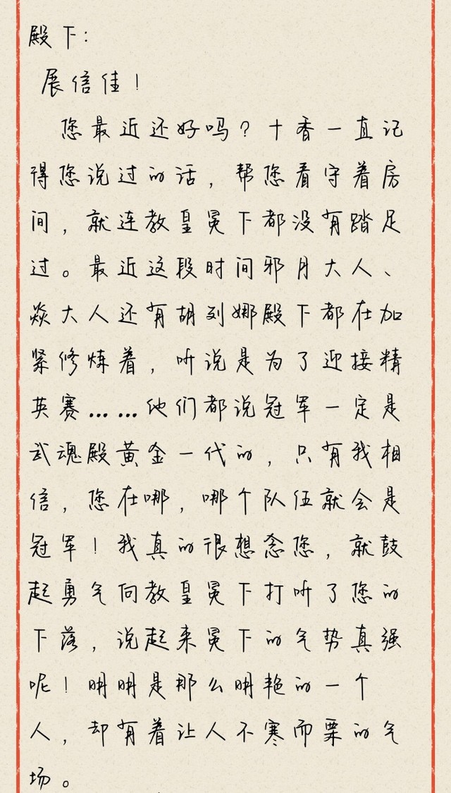 她眼前一亮,只见微黄的信纸上端端正正地写着“千姒殿下收”几个字。