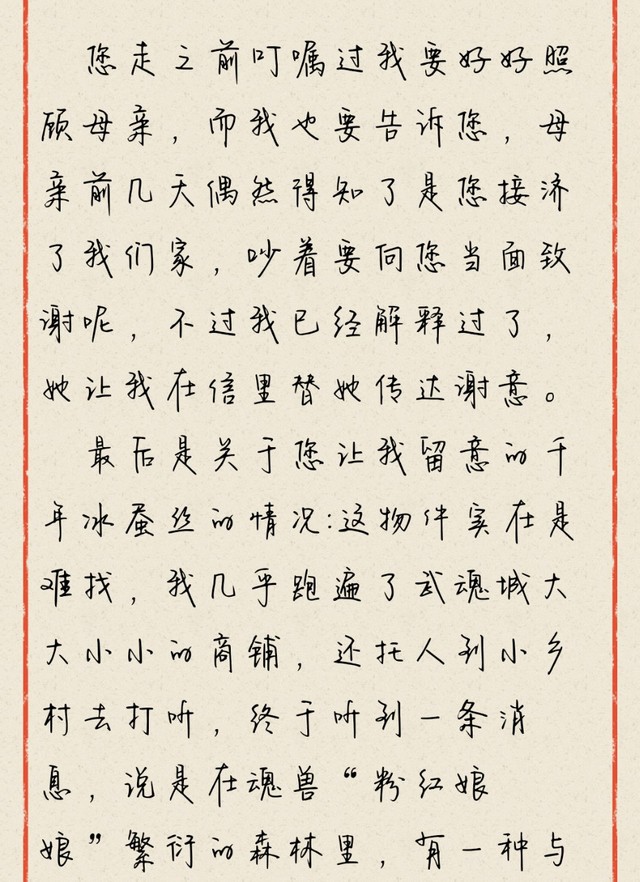 魏无羡御剑带着她回了小木屋,唐姒这才小心翼翼地拆开信件。
