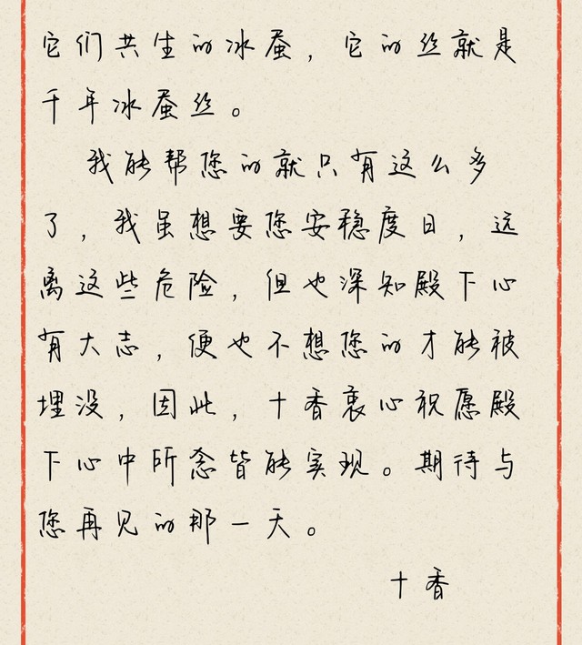 一口气读完信里的内容,唐姒心中百感交集,不止有对这位十香姑娘的感激之情,更被她的真诚与负责给震撼了。
