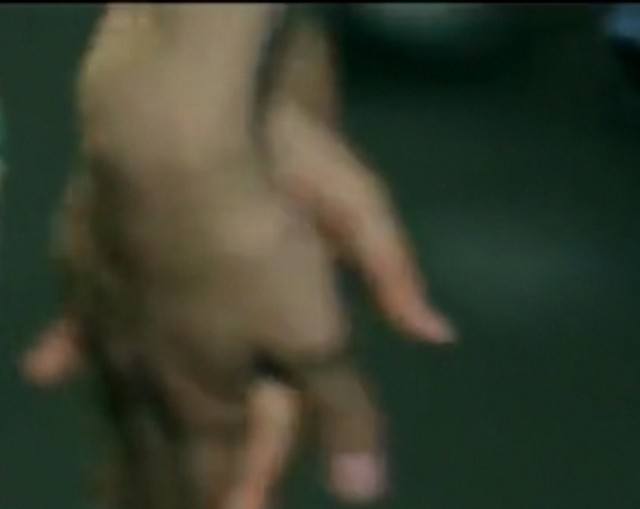 两人的手前后摆动,有时还碰到一起