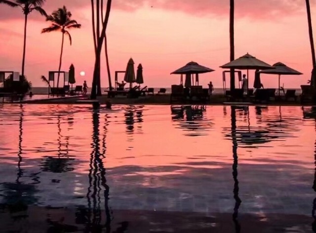 天色渐渐暗下来,魏硝胳膊环着膝盖坐在沙滩上,静静地欣赏着久违的美景。